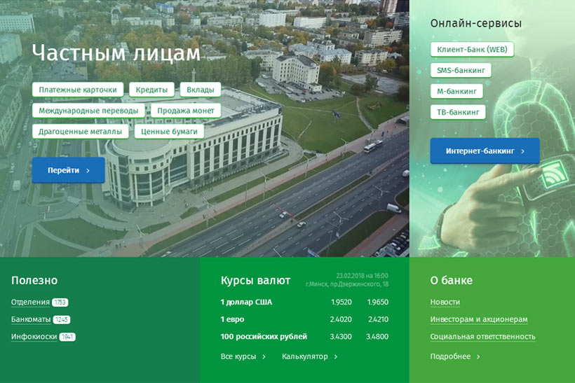 «Технологии движутся вперед, в тренде – комфорт и минимализм. Это стало идеологической платформой для создания новой версии корпоративного сайта», – пишет пресс-служба «Беларусбанка».