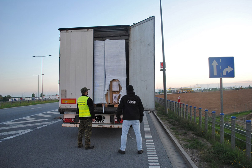 Выяснилось, что в фуре, которой управлял 28-летний литовец, вместо заявленных теплоизоляционных материалов находится огромное количество табачных изделий без польских акцизных знаков.