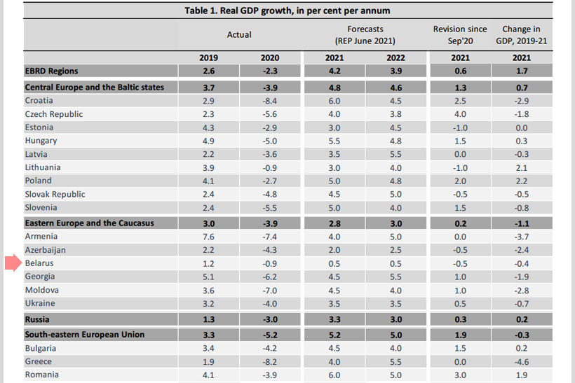 В частности, как полагают аналитики данного финучреждения, ВВП Беларуси вырастет в 2021 и 2022 году на одну и ту же величину – 0,5 процента.
