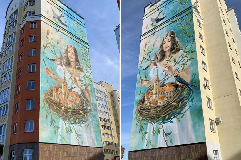 В Могилеве в День матери представили новый мурал, который носит название «Бацькоўскi кут». Он появился на многоэтажке по адресу проспект Мира, 61. Площадь росписи составляет 330 квадратных метров.