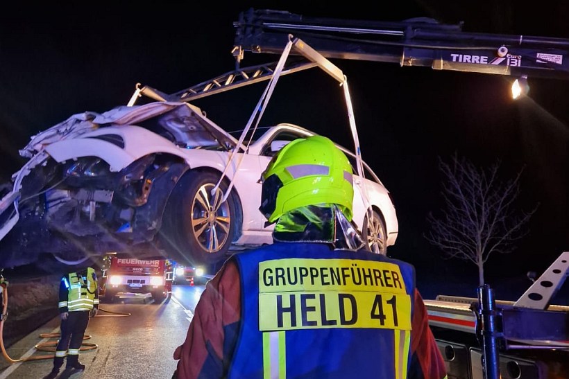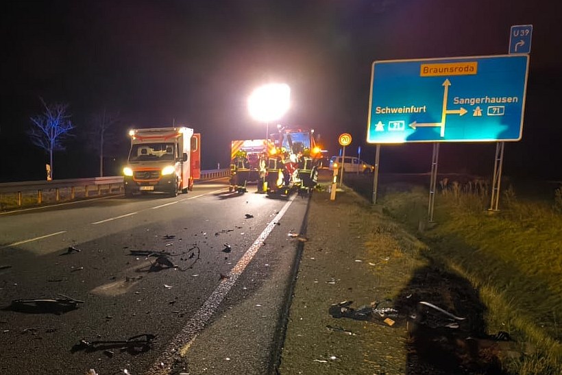 Авария случилась в субботу 10 февраля около 18.00 на двухполосной дороге между въездом на автобан А71 и круговой развязкой на трассе B86. По невнимательности 54-летний водитель Mercedes неправильно оценил скорость двигавшегося перед ним в том же направлении Belarus и из-за слишком высокой своей скорости врезался в него.