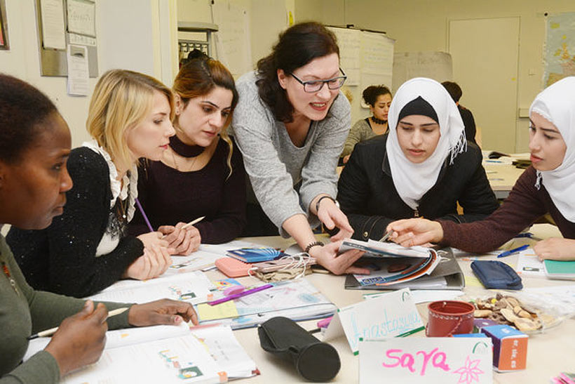 Чтобы жить в ФРГ, приехавшим в том числе нужно хорошее знание немецкого. Вот почему они здесь – на первом интеграционном курсе для женщин в Профессионально-техническом центре баварской экономики в Вайдене.