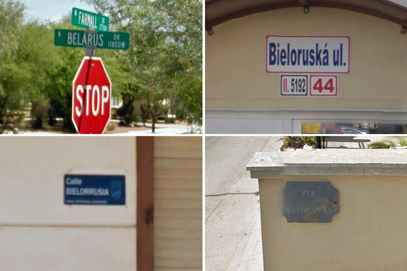 Google, конечно, мог где-то и ошибиться, но в некоторых случаях на указателях и домах действительно оказались отчетливо видны подтверждающие таблички: «Via Bielorussia», «Belarus Lane», «Ulica Bieloruská»…