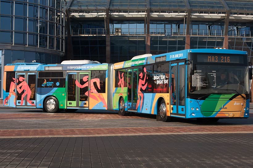 Новый автобус изготовлен всего за полгода. Работы стартовали еще весной в Дзержинске, где был сварен каркас, а окончательная сборка осуществлялась в цехах Минского автозавода. Первый экземпляр символично раскрашен в цвета Европейских игр в Минске, во время которых пассажиров будут перевозить именно автобусы «МАЗ».