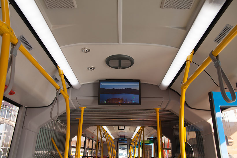 Новинка относится к категории автобусов особо большой вместимости. Внутри предусмотрено 40 брендированных сидений, а всего же в салоне поместится около 170 человек. Предназначен автобус для использования в городских условиях – на наиболее оживленных маршрутах. Конфигурацию салона можно менять в зависимости от пожеланий заказчика. Внутри предусмотрен мощный кондиционер с функцией обогрева.