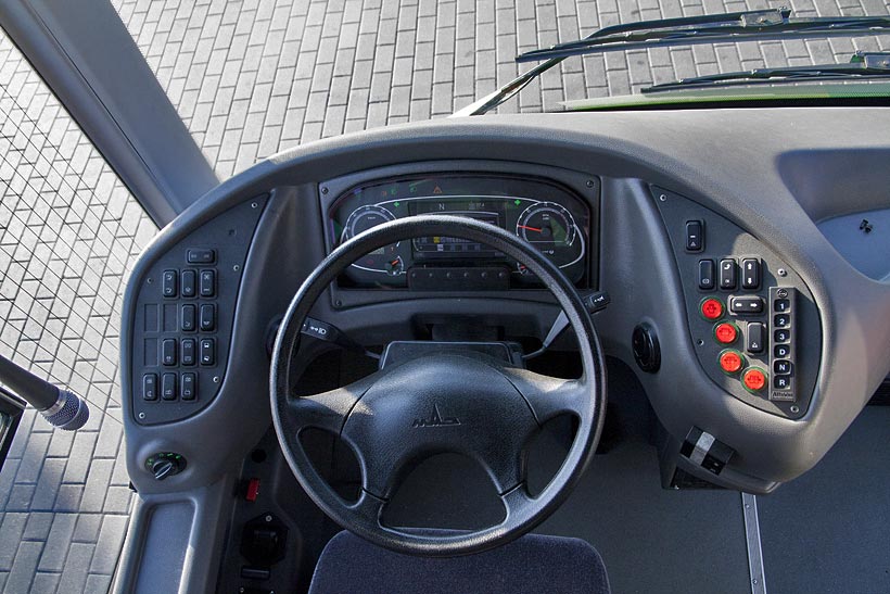 Автобус оснастят 326-сильным двигателем от Mercedes (Daimler AG OM 926) класса Евро-5 и автоматической коробкой передач Allison (T375w/Ret). Предельная скорость ограничена на отметке 85 км/ч. Кстати, для стран Евросоюза автобусы будут комплектовать моторами класса Евро-6. Топливный бак рассчитан на 300 литров, но по желанию его расширят до 400 литров и перенесут в задний свес 1-ой секции.