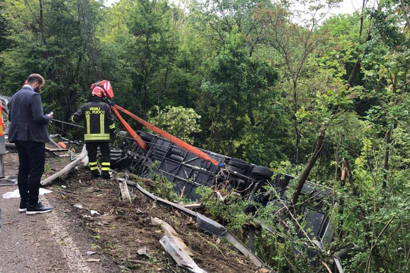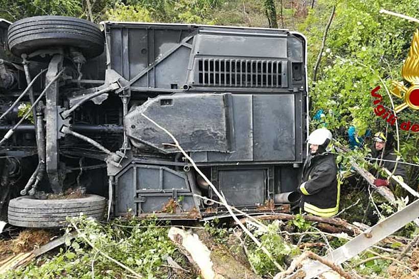 По информации итальянских СМИ, ДТП произошло утром 22 мая на дороге из Флоренции в Сиену. Двухэтажный автобус пробил дорожное ограждение, вылетел с трассы под откос и перевернулся.