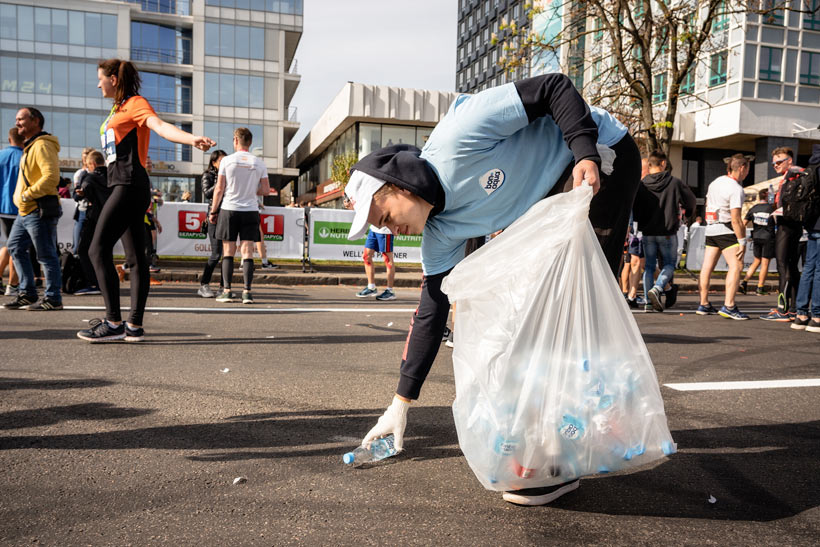 Разбросанные упаковки не только мешают участникам, которые бегут следом, но и засоряют пространство города. В этом году бренд Bonaqua – питьевой партнер Минского полумарафона – инициировал сбор мусора прямо во время забегов участников на длинные дистанции.