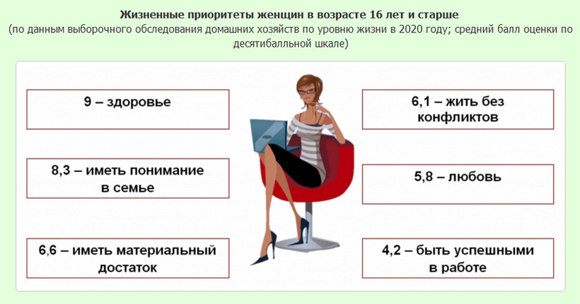 Средний возраст женщин в стране оказался равен 43,1 года. В городах – 41,9 года, на селе – 47,3 года. Уровень занятости представительниц слабого пола в трудоспособном возрасте – 79,5 процента, средний уровень возраста занятых – 42,4 года.