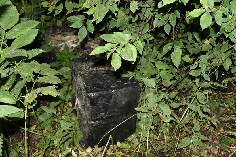 Пограничники попытались остановить автомобиль, но водитель не отреагировал на их сигналы и попытался пойти на таран. При попытке бегства из машины было выброшено четыре пакета.