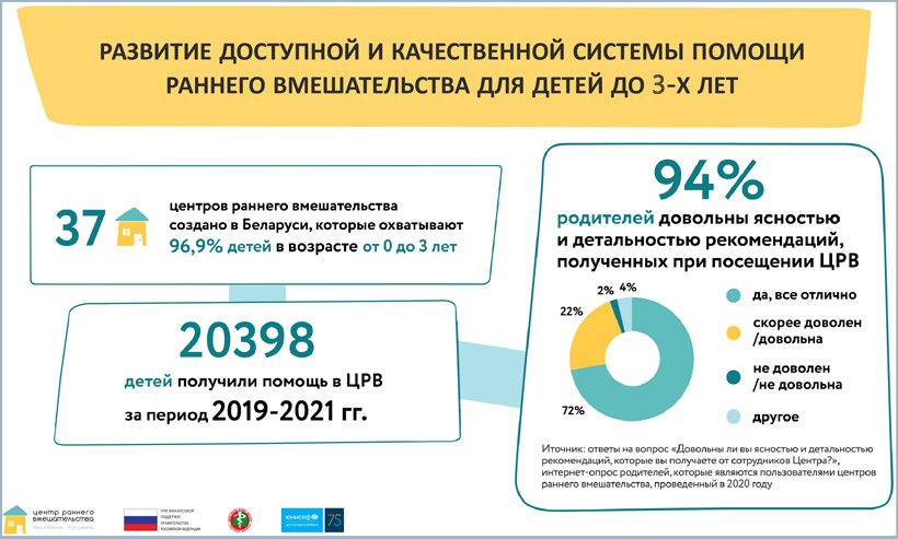 - 94 процента мам и пап остались довольны ясностью и детальностью рекомендаций во время их посещения (по данным интернет-опросов, которые проводились среди посетителей центров раннего вмешательства.