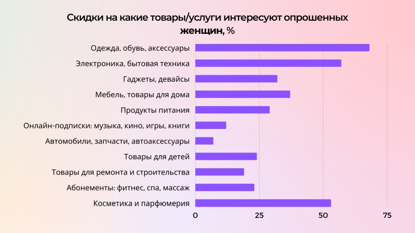 Чаще всего белорусы ищут на распродажах бытовую технику, одежду и гаджеты. Причем мужчины в четыре раза меньше женщин интересуются скидками на косметику и парфюмерию, и в два раза больше – сниженными ценами на онлайн-подписки.