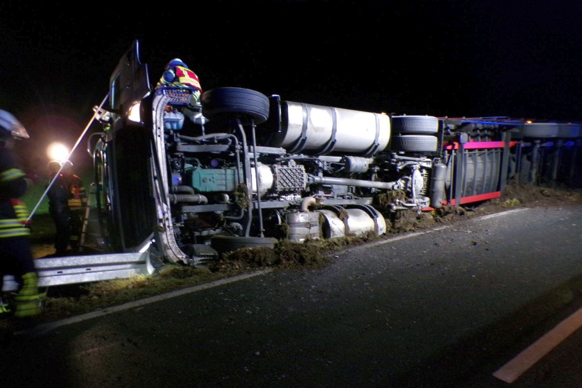 В немецкой земле Нижняя Саксония сошел с трассы и опрокинулся на бок грузовик под управлением белоруса. Об этом сообщает спасательная служба города Хойя, который находится недалеко от Бремена.
